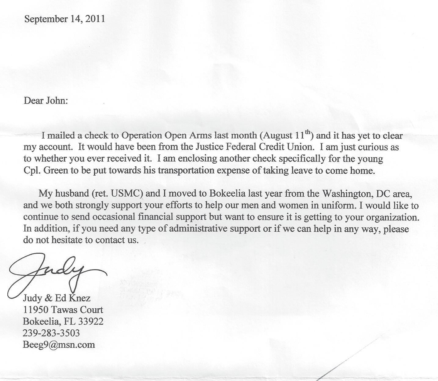 10/7/13 – Letter Speaks to the Character of Operation Open Arms