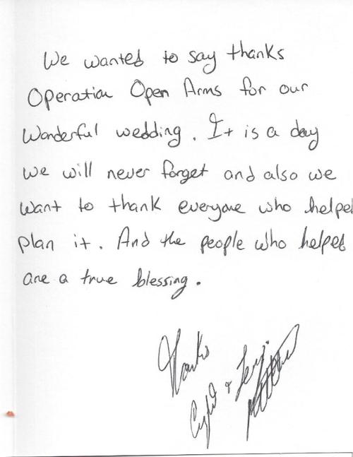 11/11/12 – Operation Open Arms donates final wedding